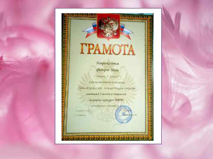 Работа Вани Фёдорова заняла I место на зональном конкурсевыставке в г. Сафоново в 2013 году 13 лет