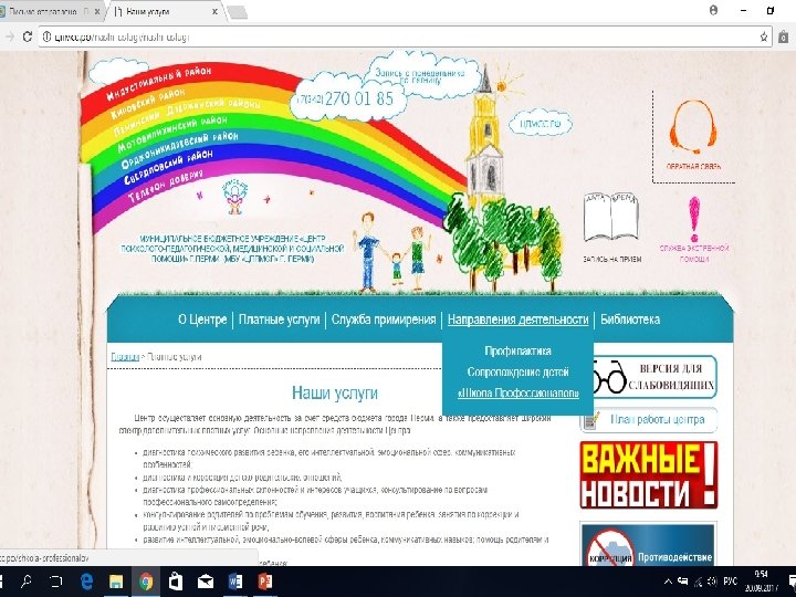 МУНИЦИПАЛЬНОЕ БЮДЖЕТНОЕ УЧРЕЖДЕНИЕ «ЦЕНТР ПСИХОЛОГО-ПЕДАГОГИЧЕСКОЙ, МЕДИЦИНСКОЙ И СОЦИАЛЬНОЙ ПОМОЩИ» Г. ПЕРМИ Блок «Результативность» линия педагогов-психологов Подпроект «Школа юного психолога» : 1. Научно-практическая конференция для учащихся «В мире психологии» , март 2018 2. Олимпиада по психологии для учащихся 8 -10 классов Районный этап – декабрь – февраль 2018 Городской этап – март 2018 3. Психологические каникулы Ноябрь 2017, январь, март, июнь 2018 Конкурс проектов развития школьных служб примирения сентябрь- ноябрь 2017 Конкурс для воспитанников детских садов «Сказочная квест-история» (формирование навыков коммуникации и взаимодействия в группе, развитие ВПФ) (проводится по решению районного подразделения)