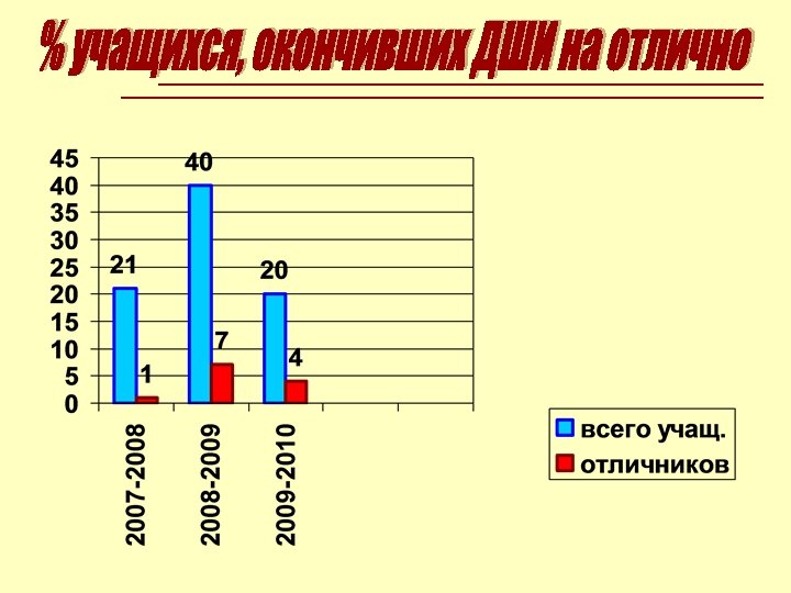 Информация о мероприятиях, проведенных в 2009 -2010 году Городской семинар «Становление личности ребенка посредством искусства» . Дата: март 2010 года Областной пленэр для преподавателей ДШИ и ДХШ области в рамках курсов повышения квалификации. Дата: июнь 2010 г. Дни открытых дверей (апрель, май) Декабрьские вечера (декабрь) Концерт «Любимые мелодии» (март) Отчетный концерт (апрель) Бенефис вокально-педагогического ансамбля «ПАРАФРАЗ» Юбилейный концерт ансамбля аккордеонистов «Добрый жук»