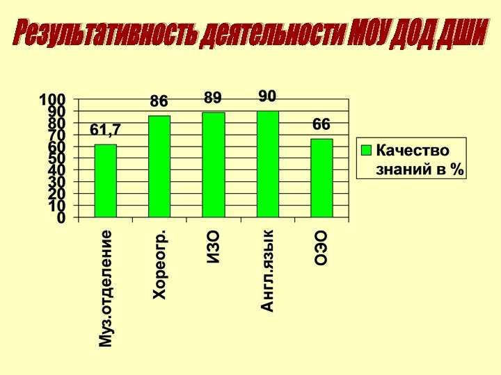 ДШИ Хореографическое отделение (54 учащихся) Общеэстетическое отделение (32 учащихся) Музыкальный театр Хоровой класс Музыкальное отделение (131 учащихся) Оркестровый отдел Фортепианный отдел Отделение изобразительного искусства (74 учащихся) Отделение иностранного языка (99 учащийся) Народный отдел Балалайка Скрипка Фортепиано Виолончель Саксофон Флейта Теоретический отдел Аккордеон Гитара Домра Баян