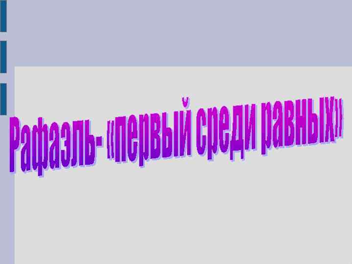Муниципальное общеобразовательное учреждение Путинская средняя общеобразовательная школа Рафаэль – «первый среди равных» Асланян Светлана Сергеевна учитель истории 12 разряд Пермский край, Верещагинский район 2008 г.