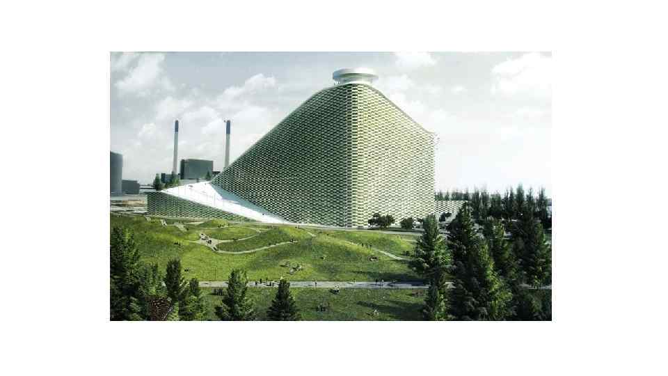 Для Копенгагена, к примеру, архитектурное бюро BIG спроектировало мусоросжигательный завод нового поколения. Завод будет не просто перерабатывать мусор в электроэнергию, но также напоминать горожанам о количестве выработанного углекислого газа. Каждый раз при выработке 1 т углекислого газа из трубы завода будет выпускаться кольцо дыма диаметром 30 м. Ночью кольцо будет подсвечиваться разными цветами. Крыша завода будет использоваться как горнолыжный спуск. Подъемники на вершину спуска будут проходить по сторонам завода.