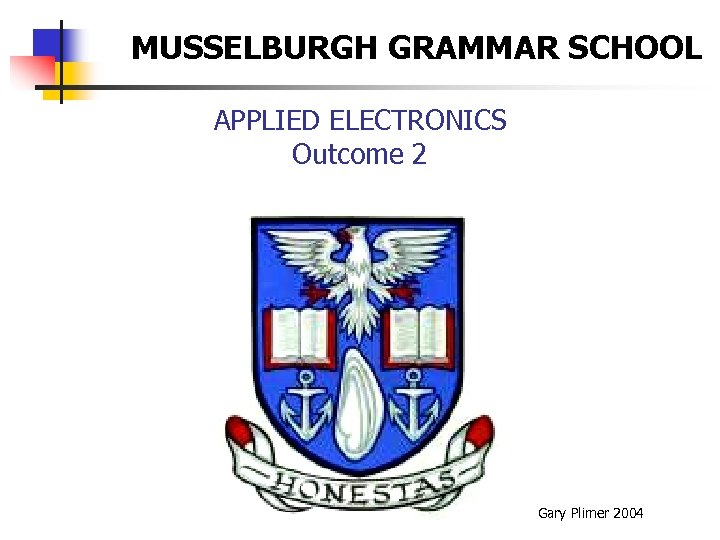 MUSSELBURGH GRAMMAR SCHOOL APPLIED ELECTRONICS Outcome 2 Gary Plimer 2004