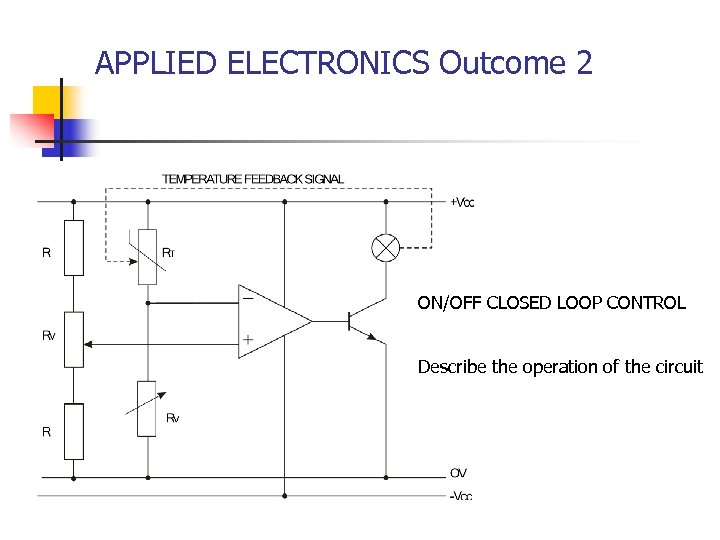APPLIED ELECTRONICS Outcome 2 ON/OFF CLOSED LOOP CONTROL Describe the operation of the circuit