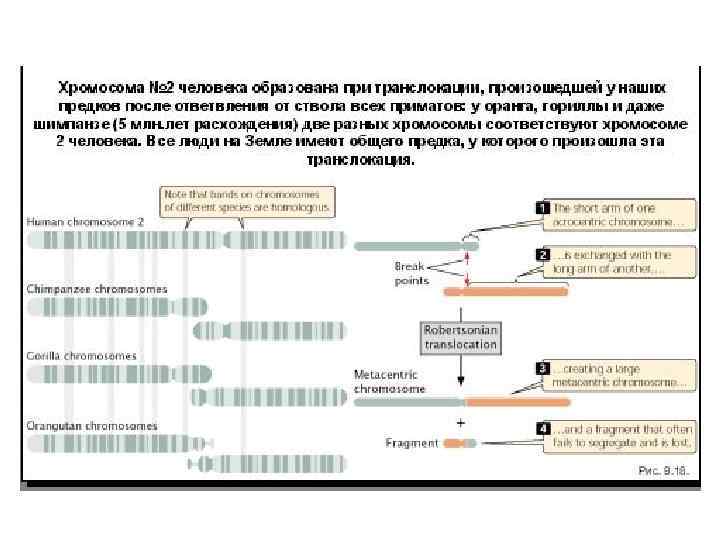 Эволюция понгид • 2 -я хромосома кариотипа человека образовалась в результате транслокации двух хромосом кариотипа шимпанзе