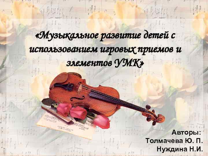 «Музыкальное развитие детей с использованием игровых приемов и элементов УМК» Авторы: Толмачева Ю. П. Нуждина Н. И.