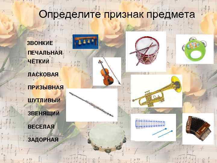 Определите признак предмета ЗВОНКИЕ ПЕЧАЛЬНАЯ ЧЁТКИЙ ЛАСКОВАЯ ПРИЗЫВНАЯ ШУТЛИВЫЙ ЗВЕНЯЩИЙ ВЕСЕЛАЯ ЗАДОРНАЯ