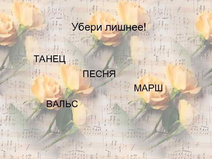 Убери лишнее! ТАНЕЦ ПЕСНЯ МАРШ ВАЛЬС