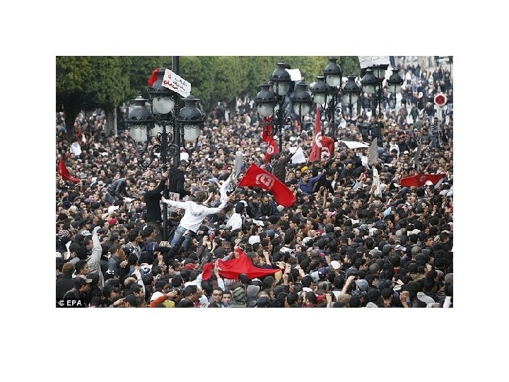 Tunisia : the Arab Spring, ‘Success’? ! v 2010 December - Protests break out over unemployment and political restrictions, and spread nationwide. v. Tunisians overthrew the Ben Ali regime in the first popular revolution of the Arab Spring v 2011 January - President Ben Ali goes into exile amid continuing protests. v. Prime Minister Mohammed Ghannouchi announces an interim national unity government, only partly satisfying protesters. v 2011 February - Prime Minister Ghannouchi resigns, responding to demands by demonstrators calling for a clean break with