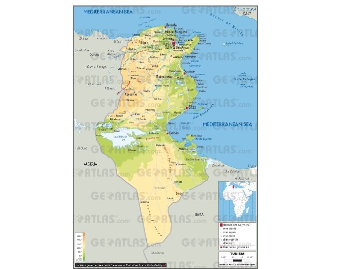 FACTS ABOUT TUNISIA v. Population : 12 Million v. Area: 163, 610 square kilometer v. Continent: AF – Africa v. Capital: Tunis v. Currency: Dinar (TND) v. Relgion: Islam v. Language : Arabic v. Climate: temperate in north with mild, rainy winters and hot, dry summers; desert in south v. Terrain: mountains in north, desert in the South , v. Resources: petroleum, phosphates, iron ore, lead, zinc, salt