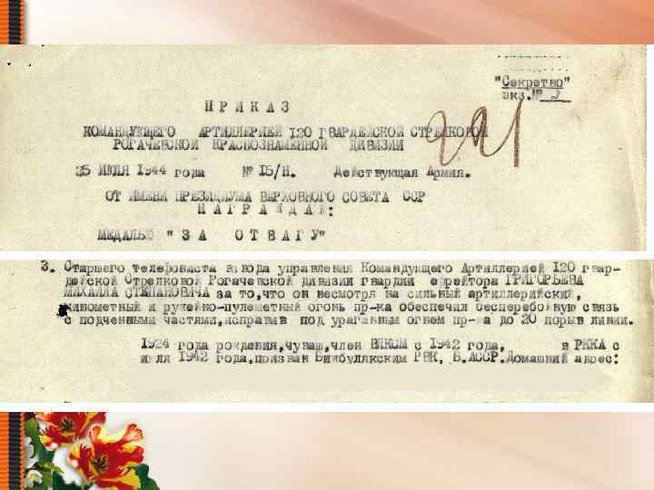 Приказ и наградной лист 29 февраля 1944 года