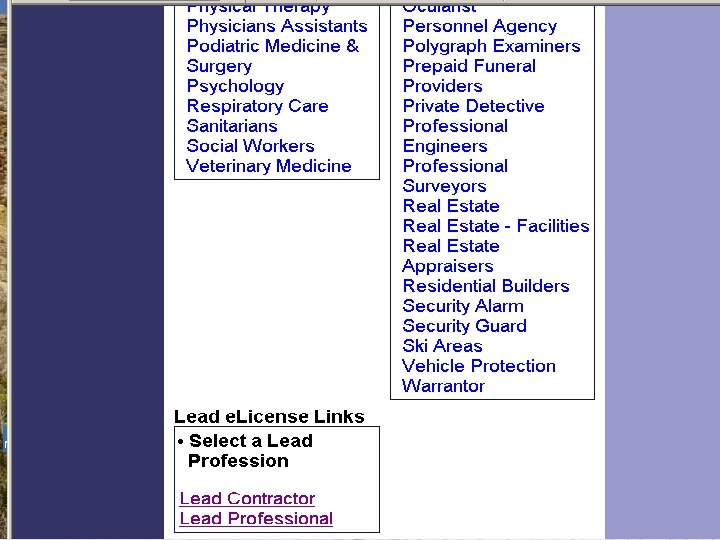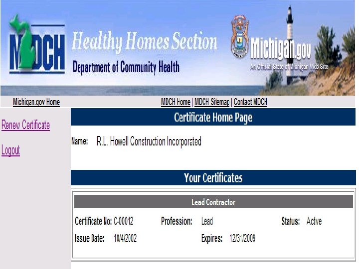 My-License & License 2000 • Currently allows certified individuals and companies renew online. • In the future will allow us to do initial certifications online. • Will enable us to more efficiently process the thousands of applications that may come as a result of the RRP.