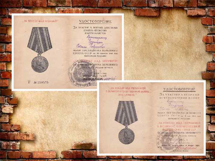 НАГРАЖДЕН МЕДАЛЯМИ: «За боевые заслуги» , «За отвагу» , «За победу над Японией» , «За победу над Германией в Великой Отечественной Войне 1941 -1945 г. »