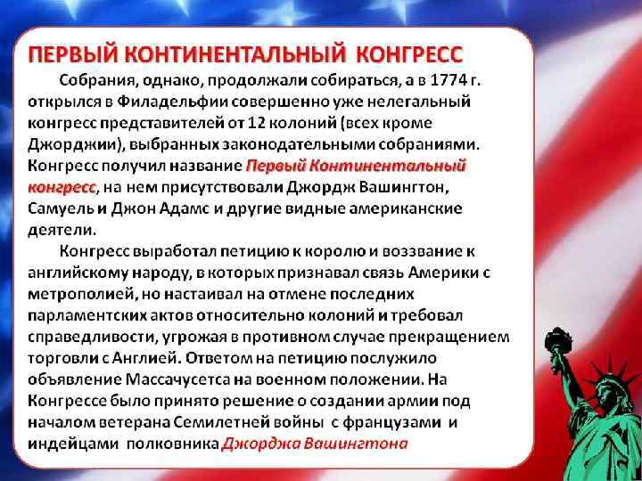 Июль 1775 г. — правые элементы Конгресса во главе с Д. Диккинсоном отправили английскому королю «Петицию оливковой ветви» .