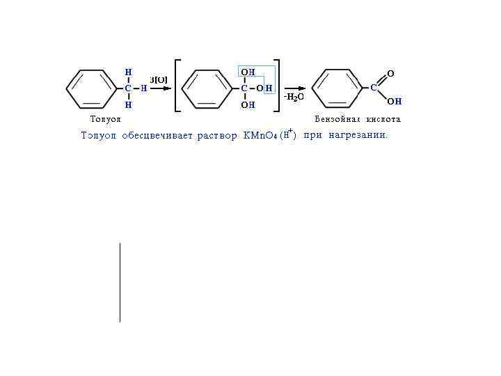 АЛКАНЫ И ЦИКЛОАЛКАНЫ Алканы устойчивы к действию окислителей в обычных условиях. Поэтому при добавлении к алканам водного раствора перманганата калия окраска раствора не меняется. Однако при каталитическом окислении (в присутствии солей марганца) и одновременном нагревании происходит окисление алканов (особенно высших) с образование многих кислородсодержащих веществ.