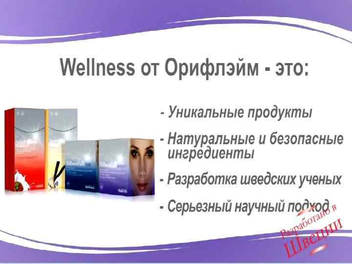 • Шведские эксперты – создатели серии Вэлнэс • • • Специалисты, принявшие участие в разработке Вэлнэс-серии для Орифлэйм, – всемирно известные доктора, специалисты в области клинической медицины и здорового питания. Богатый практический опыт, широкая теоретическая подготовка и изучение новейшей научной литературы сделали их авторитетнейшими экспертами в вопросе сохранения молодости, красоты и отличного самочувствия. Профессор Свен-Улоф Исакссон, д. м. н. , Отделение клинической медицины медицинского факультета Лундского универтитета, Швеция Свен-Улоф Исакссон – независимый эксперт, специалист в области кардиологии, терапии и семейной медицины. Около 20 лет возглавляет Институт Здравоохранения, специализируясь в области здорового питания и антивозрастных технологий. В своих научных работах доктор Исакссон доказывает важность сбалансированного рациона питания для нормального функционирования организма. Профессор Йорген Серуп, д. м. н. , Отделение дерматологии Университетского госпиталя г. Линчёпинга, Швеция Йорген Серуп специализируется в области дерматологии и изучает зависимость состояния кожи от рациона питания. Он открыл лабораторию для изучения неинвазивных биофизических методов омоложения кожи, ставшую самой крупной исследовательской организацией в Скандинавии. Профессор Серуп приобрел большой опыт в области фармацевтики, составляя рецептуры лекарственных средств, в частности, для лечения кожи. Йорген Серуп входит в список ведущих европейских исследователей в области дерматологии. Профессор Стиг Стен, д. м. н. , заведующий кафедрой кардиохирургии Лундского универтитета, Швеция Стиг Стен – один из разработчиков серии Вэлнэс для Орифлэйм. Он является виднейшим специалистом в передовых областях медицины с более чем 30 -летним опытом практических исследований. Формула натуральных коктейлей «Нэчурал Бэланс» была создана профессором Стеном и его командой по результатам 8 летних исследований в области нутрицевтики.
