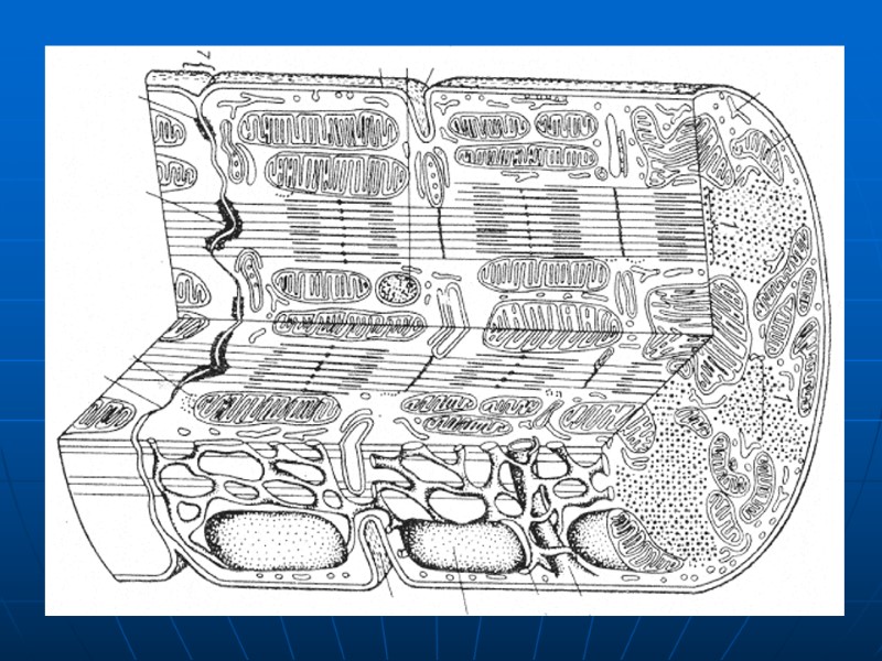 ПОПЕРЕЧНОПОЛОСАТАЯ СЕРДЕЧНАЯ МЫШЕЧНАЯ ТКАНЬ — структурная единица —кардиомиоцит, имеет цилиндрическую или отростчатую форму, ядро — в центре. — клетки анастомозируют между собой с образованием трехмерной сети. — клетки соединяются между собой “конец в конец” с помощью вставочных дисков, которые придают механическую прочность ткани и обеспечивают быстрое распространение электрических импульсов по его объему. — сократительный аппарат представлен множеством параллельно ориентированных миофибрилл. — кардиомиоциты имеют сильно развитый биоэнергетический аппарат, представленный многочисленными митохондриями.