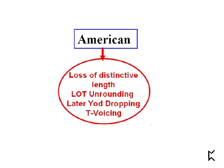 American English • • Loss of distinctive length LOT Unrounding Later Yod Dropping T-Voicing