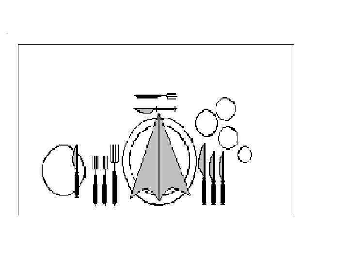 n n Посуду с закусками расставляют на столе в определенной последовательности начиная с закусок в больших блюдах. Закуски в посуде на ножках (вазы) или с высокими бортами (салатники) расставляют ближе к центру стола, а с низкими бортами (блюда, ложки) ближе к предметам сервировки, причем закуски должны чередоваться, например, рыба, овощи, мясо и т. д.