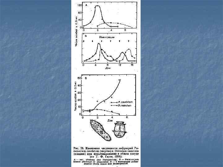 n n n Наблюдал за изменением численности культур инфузорий туфельки Использовал в опытах три вида : Paramecium caudatum P aurelia P. bursaria