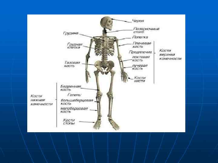 Опорно двигательный аппарат включает кости, мышцы и соединения костей. Кости — это твердые и прочные части, служащие опорой телу, мышцы — мягкие части, покрывающие кости, а соединения костей — это структуры, при помощи которых кости соединяются. Все кости, а их примерно 206, составляют систему костей, или скелет, который придает телу внешнюю конфигурацию, вид и обеспечивает ему жесткое и прочное устройство, защищает внутренние органы, накапливает минеральные соли и вырабатывает клетки крови.