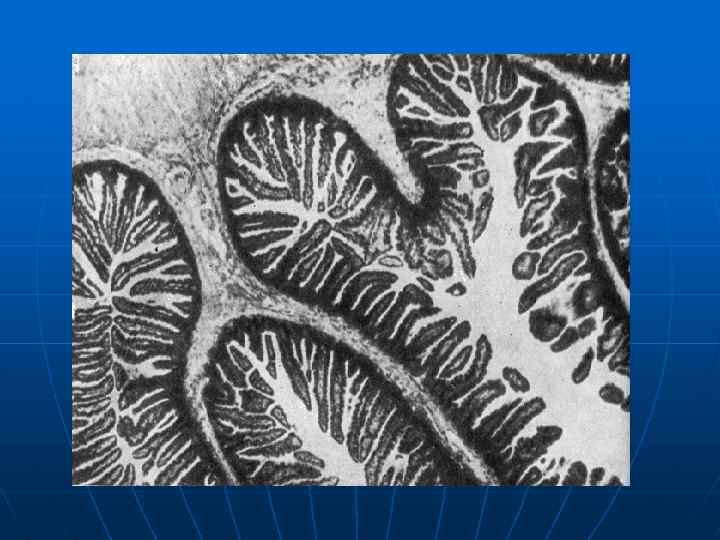 Устройство кишечной стенки n n Клетки слизистой имеют до 4000 выростов микроворсинок. На 1 кв. мм поверхности кишечного эпителия их около 50 200 миллионов! Таким образом они образуют довольно плотную «щетку» , которая называется щеточной каймой. Такая структура каймы не только резко увеличивает всасывающую поверхность энтероцитов (в 20 60 раз), но и определяет многие функциональные особенности протекающих на ней процессов. Поверхность микроворсинок покрыта гликокаликсом. Он состоит из многочисленных тонких извилистых нитей, образующих дополнительный предмембранный слой, и заполняющий поры между микроворсинками. Гликокаликс с микроворсинками играет роль пористого катализатора. Значение катализатора состоит в том, что он увеличивает активную поверхность.