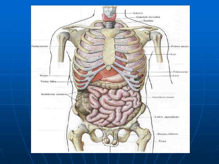 n n n Для обозначения положения органов и частей тела пользуются следующими определениями, входящими в список анатомических терминов: медиальный (media. Iis), если орган (органы) лежит ближе к срединной плоскости; латеральный (боковой; lateralis), если орган расположен дальше от срединной плоскости; промежуточный (intermedius), если орган лежит между двумя соседними образованиями; внутренний (лежащий внутри; internus) и наружный (лежащий кнаружи; externus), когда говорят об органах, расположенных соответственно внутри, в полости тела, или вне ее; глубокий (лежащий глубже; profundus) и поверхностный (расположенный на поверхности; superficialis) для определения положения органов, лежащих на различной глубине.