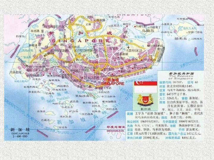 • (2) The capital : Singapore • (3) Major cities : Singapore • (4) The official languages: English, Chinese, Malay, Tamil • (5) The population: 5. 18 million (2011) • (6) Population density : 7257 people/km 2 (2011) • (7) The main national : Chinese, Yin. Du. Zu, Malay, Eurasian family • (8) The main religion : Buddhism, Taoism, Catholic, Hinduism