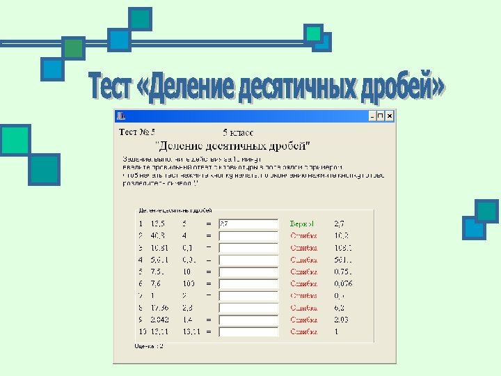 Программа «Деление десятичных дробей» направлена на проверку и улучшение навыков деления десятичных дробей у учеников пятых классов средней школы. В программе использованы функции случайных чисел для реализации вариативности заданий.