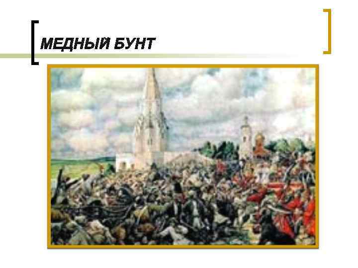 n n n n n Семнадцатый век в России Медный бунт Весь мир зашатался. . . Алексей Михайлович Романов Обстановка в стране С Дона выдачи нет Степан Разин В начале был Мятеж. . . Поход на Каспий Исход восстания Жестокий штурм Астрахани Массовые казни Продвижение отрядов Разина Цензура В фольклоре образ казака Разина Казнь Причины поражения Список литературы
