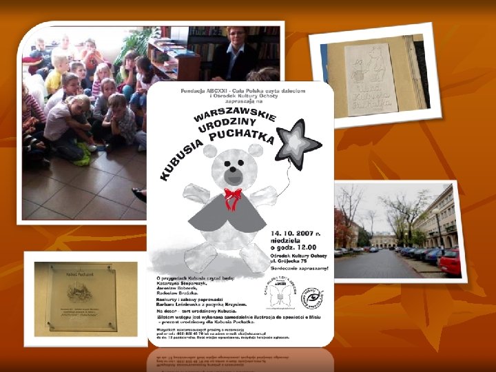 Filastrocche in polacco n n n n Krzyś odchodzi. Dokąd? Nie wiem I nikt nie w całym Lesie. Dość, że idzie, że odchodzi, Aż nam wszystkim płakać chce się. („Chce się” jest to rym do „lesie”) Trudno nam się z tym pogodzić (To znów rym jest do „odchodzi”). IT n n n Krzysztof Robin odchodzi Przynajmniej mi się tak zdaje. Dokąd? Tego nikt nie wie. Odchodzi – Nie zostaje. (Rym do “zdaje) Czy nas to obchodzi? (Rym do “odchodzi MAG
