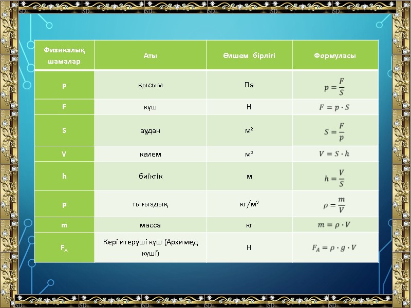 40 Жауабы: Қысым Қысымның формуласы ?