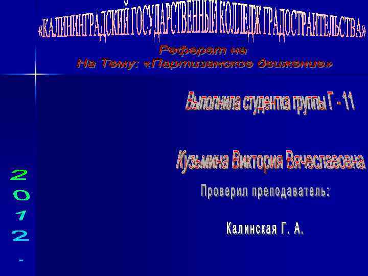 Вывод n Я считаю что если бы не крестьянские партизанские отряды то выиграть эту кровопролитную войну было бы гораздо сложней !Так как, действия армейских партизанских отрядов не были бы столь эффективны, если бы они не поддерживались крестьянами, формировавшими свои отряды. Слаженные действия всех партизанских отрядов и хорошая тактика обеспечили нам большое преимущество над Французами ! Спасибо за внимание, с уважением Виктория Кузьмина !!!