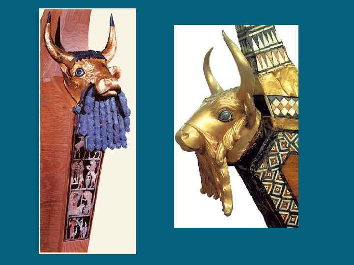 Крылатый бык с человеческой головой. VIII в. до н. э. n Крылатые быки с человеческими головами были гениями-хранителями, которых называли шеду. Шеду устанавливали по сторонам городских ворот или проходов во дворец. Шеду являлись символами, совмещавшими в себе свойства человека, животного и птицы и, следовательно, были мощным средством защиты от врагов.