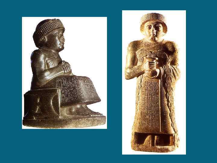 Статуя Гудеа, правителя Лагаша. XXI в. до н. э. n Гудеа, правитель независимого царства Лагаш, известен своим благочестием и строительством многочисленных храмов, посвященных различным богам. Статуя содержит посвящение богу, а также список храмов, построенных Гудеа, последним в списке стоит храм, посвященный богу Нингирсу, где, собственно, и стояла статуя.