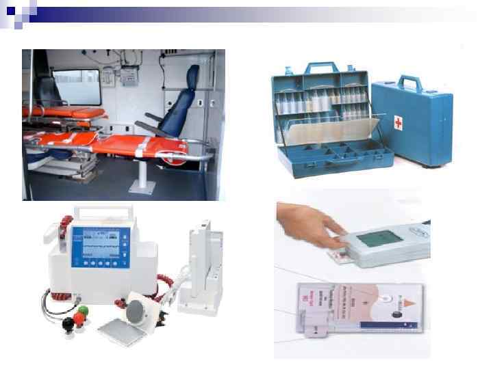 Медициналық жабдықтар n n Жедел жәрдем бригадаларының медициналық жабдықтары көлік ішінде, көшеде, үйде, өндірісте жұмыс істеуге ыңғайлы болуы керек. Әр аппараттардың көлік ішінде өз орны және сол жерге бекітілетін түйіні болуы керек. Құрал жабдықтар жинақы, көтеруге ыңғайлы болуы қажет, себебі жарақаттанғандарды келесі емдеу этапына жеткізуге қиындық тууы мүмкін. Барлық жабдықтар заласыздандырылуы керек. Көлікті қалыптар: Шанс жағасы, қатты басұстайтын, Дитерихс, Крамер, шина «Ferno» , Еланский қалыптары, омыртқа мен жамбас сүйектері сынғанда қолданатын тақтайлар, оттегі ингаляторлары, электрокардиограф болуы қажет. Дем беретін мүлік құрамы: ларингоскоп, клиноктар, интубациялы түтікшелер, мандрендер, ауызашқыш, тіл ұстағыш және дем беру түтікшелері, Амбу қапшығы, небулайзер. Таңу материалдары: бинттер, мақта -дәкелі жастықшалар, мақта тығындары, лейкопластырь, мақта. Науқасқа қажетті құралдар: тонометр, фонендоскоп, бірреттік шприцтер 2 -5 -10 -20 грамдық, қайшы, пинцет, мұрын тампонадасына қажет зонд, темір оймақ, шпатель, ампула ішінде хирургиялық жібек жіп, термометр, пипетка, жгуттар, қан және сұйықтықтар құятын системалар (бірреттік), бір жұп медициналық резинке қолғап.