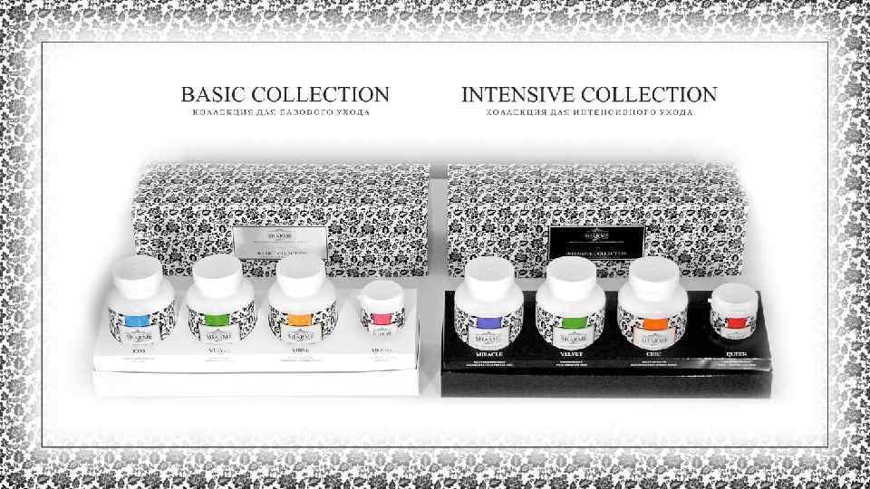 v MIRACLE (чудо) восстанавливаю щее очищающее средство v QUEEN (богиня, королева) омолаживающая маска-лифтинг v VELVET (бархат) обновляющий крем-скраб для тела v CHIC (шик) маска-шампунь для укрепления и роста волос