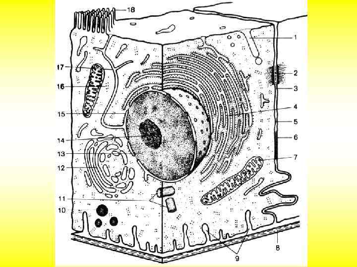 Органоиды Одномембранные Двумембранные Немембранные • ЭПР • Митохондрии • Рибосомы • Комплекс Гольджи • Пластиды • Клеточный центр • Ядро • Цитоскелет • Лизосомы • Вакуоли • Реснички и жгутики эукариот • Миофибриллы