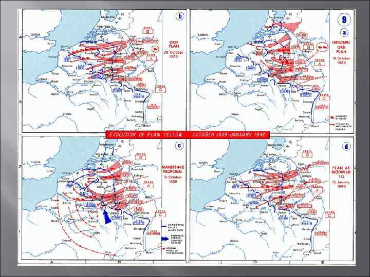 10 октября 1939 г. Гитлер подписал «приказ № 6» —о подготовке военной операции против Франции. В нём был определён и стратегический план: наступление предполагалось вести через Бельгию и Голландию. Для дезинформации противника переброска войск из Польши на Запад представлялась как «мера предосторожности» в связи с концентрацией французских войск для защиты Бельгии и Голландии. К весне 1940 г. на западных границах Германии было сосредоточено до 115 дивизий. К 24 февраля 1940 г. окончательный вариант нападения на Францию был утверждён.