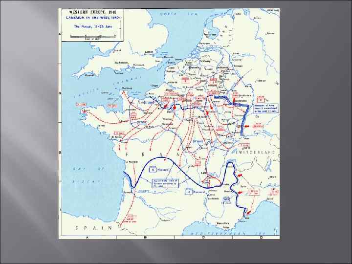 10 мая самолёты люфтваффе бомбардировали немецкий город Фрейбург; немцы обвинили в этом французскую авиацию. Гитлеровские войска, воспользовавшись этой провокацией, как предлогом для агрессии, без объявления войны широким фронтом двинулись на Бельгию, Голландию и Люксембург, открывая себе путь во Францию. Впервые в широком масштабе были применены авиадесантные войска, которые захватили важнейшие опорные пункты бельгийской и голландской оборонительных систем. Был захвачен и бельгийский форт Эбен-Эмаэль, считавшийся неприступным. Германское командование строило свои рассчёты на том, чтобы заставить французские и английские войска вступить в Бельгию и окружить их там. основное ядро немецких сил должно было осуществить глубокий прорыв через Арденны и Северную Францию к побережью Ла Манша. Одновременно немецкие войска начали операции на «линии Мажино» , чтобы задержать там войска противника. Главные же силы германского вермахта в это время форсированным маршем прошли по территории Люксембурга и 12 мая вышли на реку Маас. В течение трёх дней они взломали фронт на протяжении 100 км. В прорыв хлынули немецкие танковые и моторизованные дивизии. Французские армии начали отступать к Парижу и на запад, к морю. 15 мая капитулировала Голландия