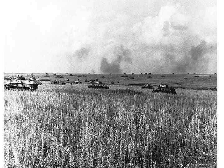 Начало войны. На рассвете 22 июня 1941 г. германская армия всей своей мощью обрушилась на советскую землю. Открыли огонь тысячи артиллерийских орудий. Авиация атаковала аэродромы, военные гарнизоны, узлы связи, командные пункты Красной Армии, крупнейшие промышленные объекты Украины, Белоруссии, Прибалтики. Началась Великая Отечественная война советского народа, которая продолжалась 1418 дней и ночей. Война закончилась , как вы знаете, 9 мая 1945 года победой советского народа. Одним из ярких событий Великой Отечественной войны явилось крупнейшее танковое сражение под городом Курском, вошедшее в историю под названием «Курская Битва» Курская битва продолжалась 49 дней — с 5 июля по 23 августа 1943. ; также известна как Битва на Курской дуге по своим масштабам, участию техники и напряжённости, является одним из ключевых сражений Второй мировой войны. Немцы собрали в районе «Курской дуги» 50 дивизий, 2 тыс. танков, 900 самолетов. СССР обороняли войска : более 700 тысяч бойцов, 5282 орудия, 5637 минометов, 1783 танка и самоходных артиллеристских установок (САУ), 1092 самолета.