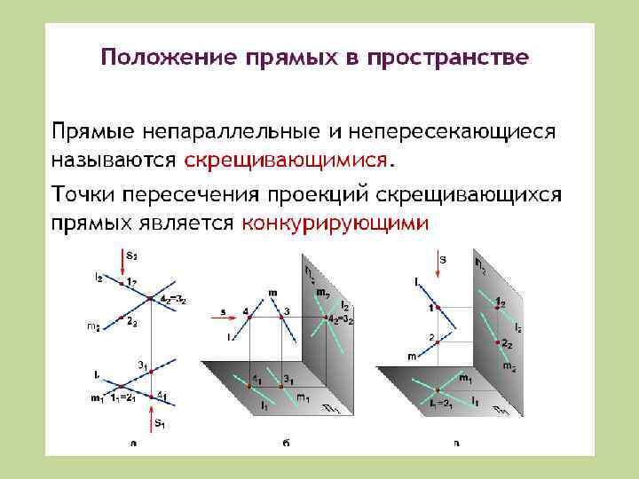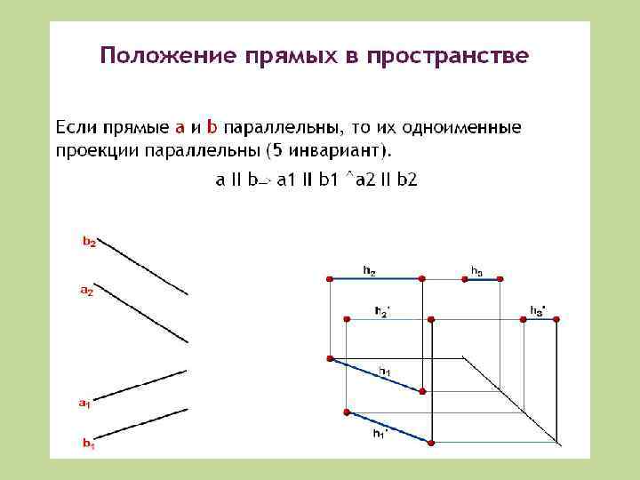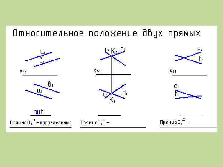 Классификация прямых • Общее положение – прямая не параллельна П 1, П 2, П 3; не перпендикулярна П 1, П 2, П 3 • Частное положение проецирующие прямые • Частное положение прямые уровня Проекция прямой в общем случае прямая; она вырождается в точку, если прямая параллельна направлению проецирования.