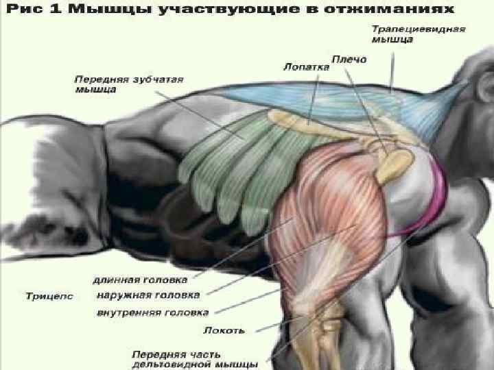 Отжимания от пола широким хватом. Отличное и простое упражнение. Если поставить ноги на небольшую подставку - будет тяжелее. А если еще и руки поставить на подставки, что бы можно было ниже опускаться - будет еще жестче. А если ещё диски на спину положить. . . ) В общем, если вы можете полностью отжаться от пола хотя бы раз 15 - утяжеляйте себе задание приведёнными выше способами. С дополнительным отягощением это упражнение вполне способно развить силу и массу ваших грудных мышц. Основные фишки 1. Ноги и спина должны составлять одну прямую линию в процессе всего упражнения. То есть не нужно задирать таз, или опускать его, прогибая спину. Так отжиматься легче, однако вы будете отжимать не всё тело, как бы. 2. Для увеличения скоростных качеств мышц (особенно актуально для занимающихся единоборствами) можно отжиматься с хлопками. Самый простой вариант, это хлопки перед собой. Посложнее – хлопки за головой. А самый сложный – хлопки за спиной. 3. Если поставите руки на подставки, то сможете опускаться ниже. А чем ниже опуститесь, тем сильнее растянется грудь или трицепс (смотря, на что делаете акцент). Значит и эффективность упражнения будет выше. В качестве подставок могут быть специальные упоры для отжиманий, плинты, диски, гири. В принципе, что угодно. 4. Тем, кто хочет больше жать лёжа, рекомендую при отжиманиях руки ставить так, как при жиме лёжа. То есть техника отжиманий должна копировать технику жима лёжа. 5. При широкой постановке рук и разведении локтей максимально в стороны, грудь работает больше всего. Однако и нагрузка на плечевые суставы максимальная. Поэтому, будьте осторожны с такой техникой.