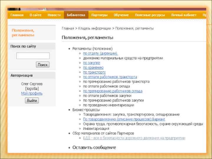 СПРАВОЧНЫЙ МАТЕРИАЛ - более 1000 ссылок на интересный сайты; - онлайн поток данных со всего мира; - онлайн биржа товаров для логистических подразделений; - скидки для постоянных членов портала.