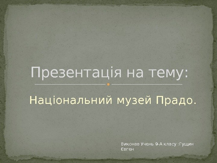 Національний музей Прадо. Презентація на тему: Виконав Учень 9 -А класу : Гущин Євген