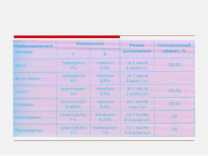 Алгоритм лечения глаукомы Монотерапия (препарат первого выбора) НЕ ДОСТИГНУТО целевое ВГД + ВТОРОЙ ПРЕПАРАТ СМЕНА ПРЕПАРАТА МОНОТЕРАПИИ ДОСТИГНУТО НАБЛЮДЕНИЕ ВГД, ПЕРИМЕТРИЯ ОФТАЛЬМОСКОПИЯ ДЗН КАЧЕСТВО ЖИЗНИ НЕ ДОСТИГНУТО целевое ВГД ЛАЗЕРНОЕ или ХИРУРГИЧЕСКОЕ ЛЕЧЕНИЕ