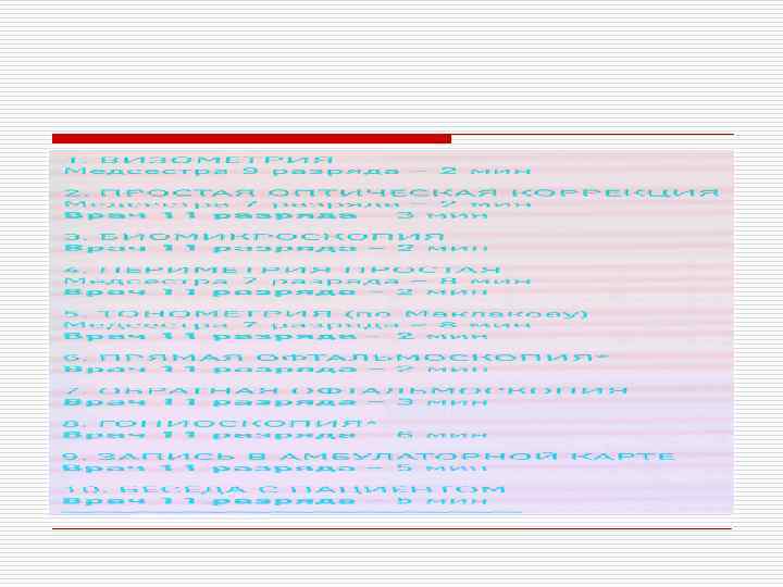 Суточная тонометрия o Эпителий роговицы в норме регенерирует после измерения тонометром Маклакова o в течении 6 -8 часов o Для построения суточной диаграммы не менее 10 значений o Размах между значениями более 3 мм некомпенсированный процесс