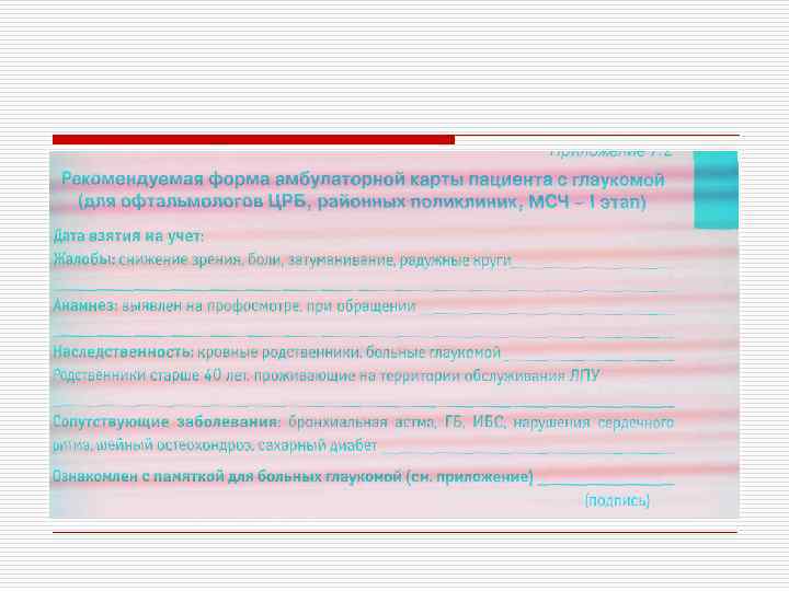 Общие факторы риска o o o Артериальная гипертензия Сердечно-сосудистые заболевания Близорукость Мигрень, другие вазоспазмы Сахарный диабет Склонность к артериальной гипотензии