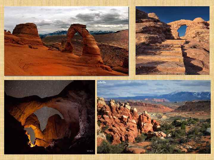 Парк Арок(Arches NP) • В этом парке насчитывается более 2 000 песчаных арок, среди них всемирно известная Деликатная или Изящная арка, являющаяся символом не только этого парка, но и всего американского штата Юта. Еще ее называют аркой «Ковбойские штаны» . Она располагается отдельно от других природных шедевров, и не соединяется ни с какими другими скалами.