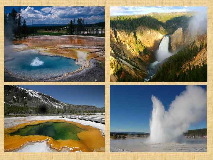 Парк Йеллоустоуна (Yellowstone) Озеро Йеллоустоун считается одним из самых больших горных озер в северной Америке; оно сконцентрировано вокруг Воронки Йеллоустоуна – самого большого супервулкана на континенте. Воронка до сих пор считается активным вулканом.